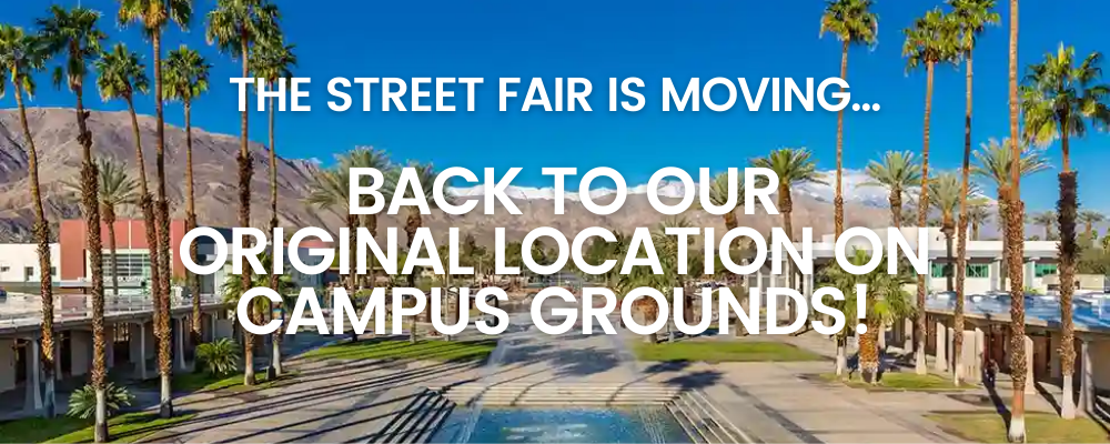 For its 42nd season, The Street Fair at College of the Desert is returning to its original campus location, where you can stroll shaded walkways, relax under the palms, and enjoy the Coachella Valley’s favorite weekend tradition in a beautiful setting.
